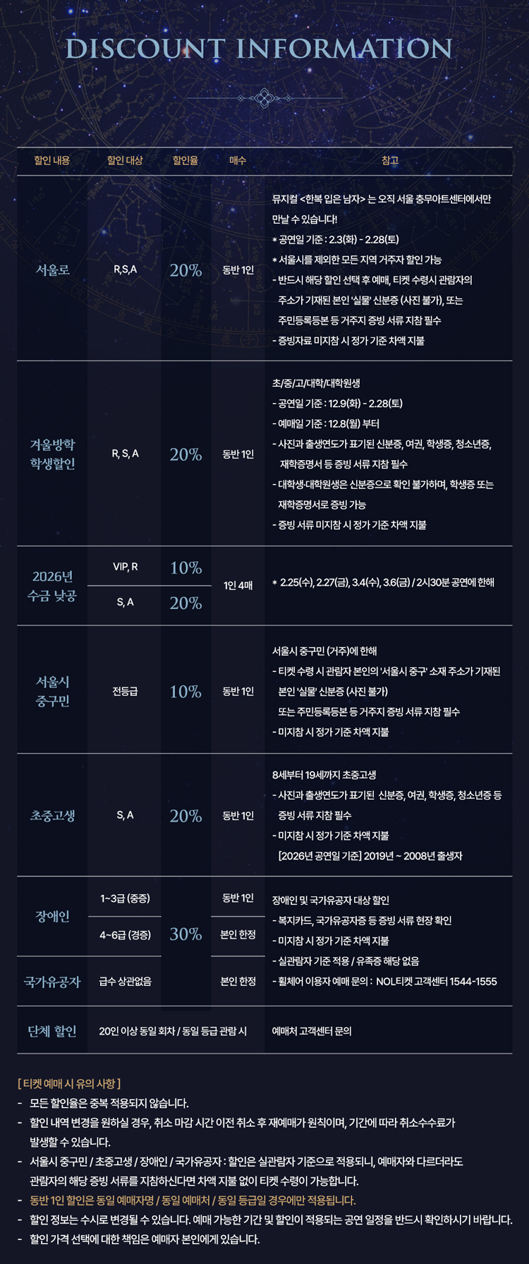 - 관람일 2일전 ~ 취소기한까지: 티켓금액의 30%