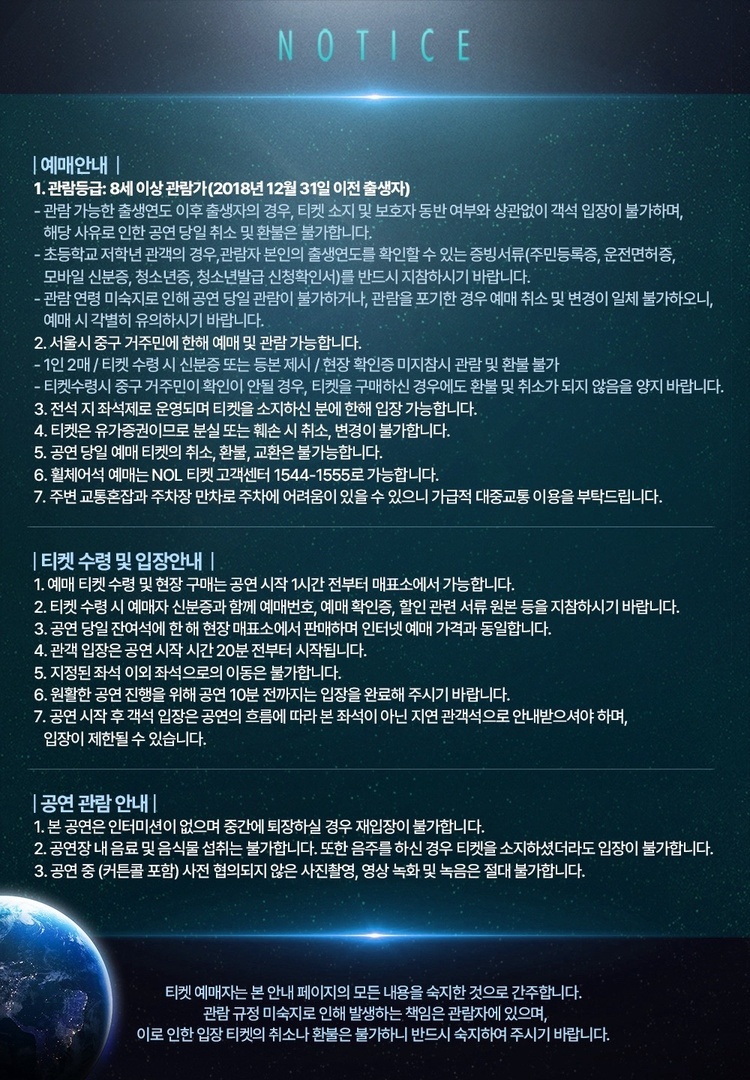 - 예매 후 7일 이내 취소시 티켓 금액 전액이 환불됩니다.(예매 수수료 제외)