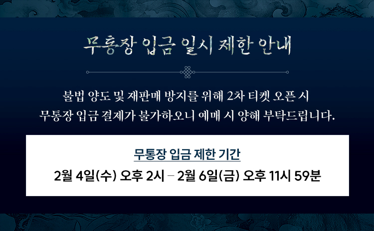 무통장입금 결제 불가 기간: 2026년 02월 03일 11:00 ~ 2026년 02월 06일 23:59