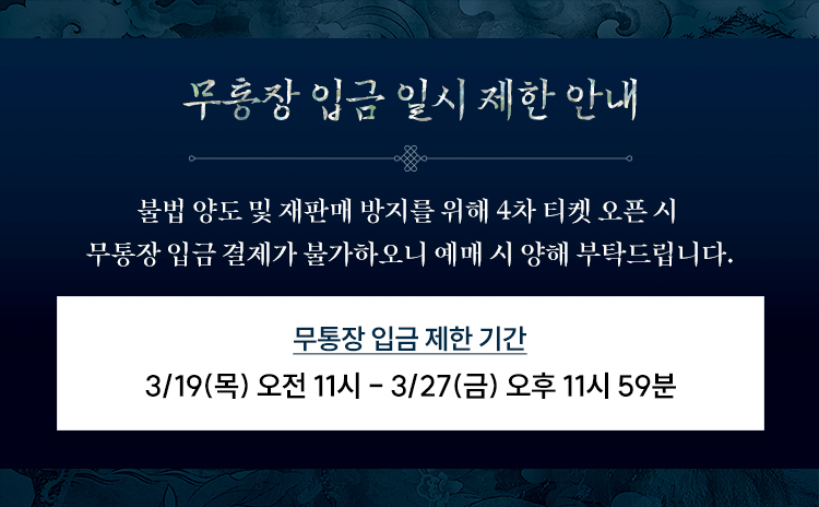 무통장입금 결제 불가 기간: 2026년 03월 19일 11:00 ~ 2026년 03월 27일 23:59