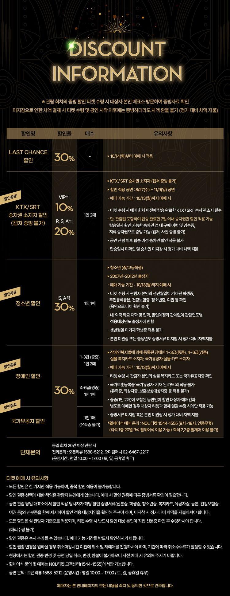 - 특정 기간, 특정 공연일에만 판매하는 가격이 있으니 예매 전 [가격 전체 보기]를 눌러 확인해 주세요.