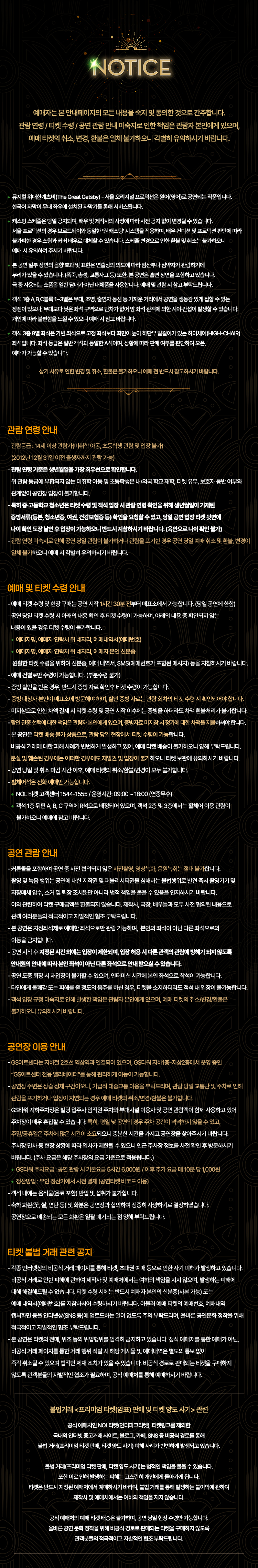 - 예매 후 7일 이내 취소시 티켓 금액 전액이 환불됩니다.(예매 수수료 제외)