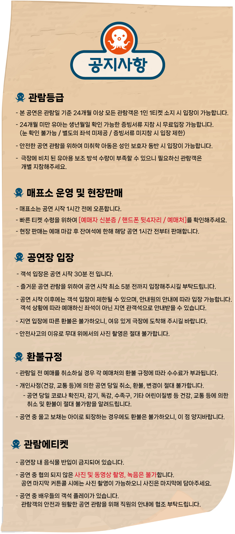 - 관람일 2일전 ~ 취소기한까지: 티켓금액의 30%