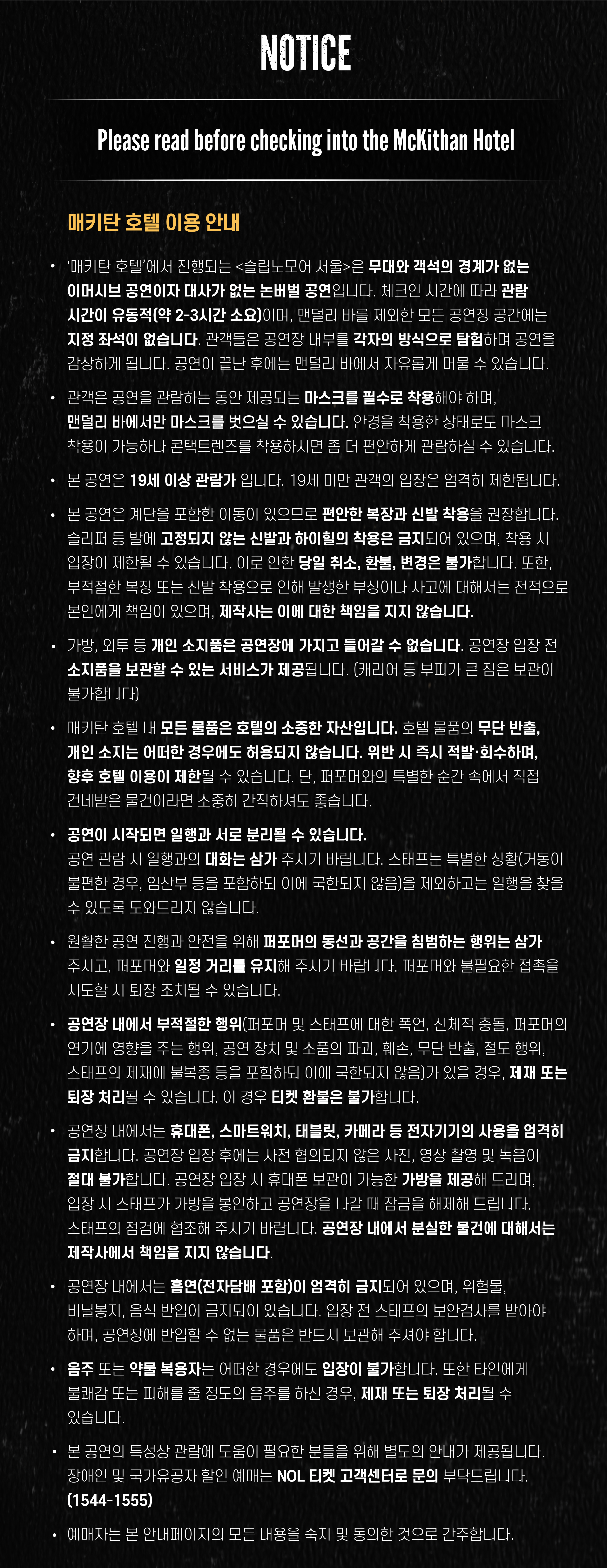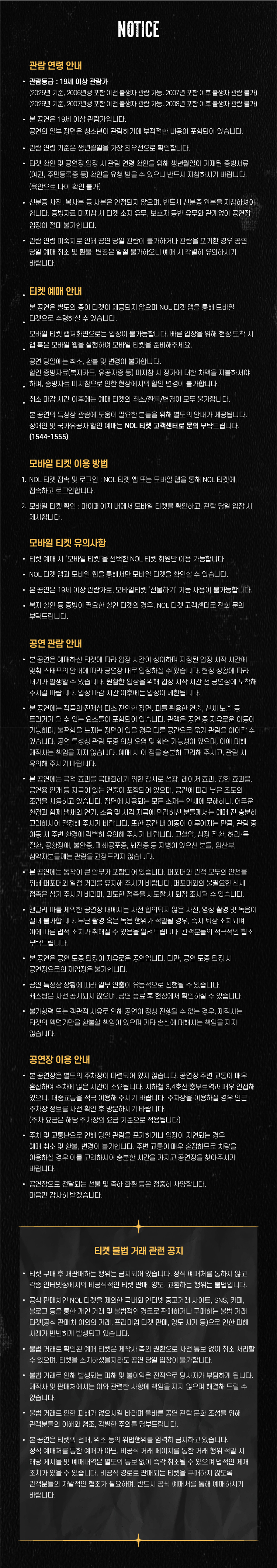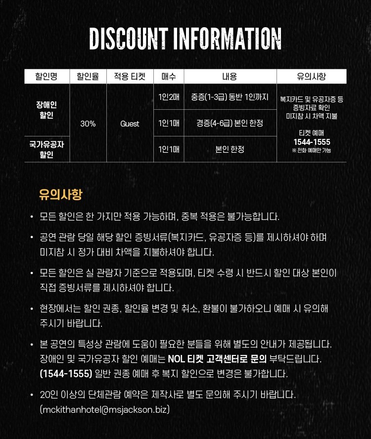 - 관람일 2일전 ~ 취소기한까지: 티켓금액의 30%