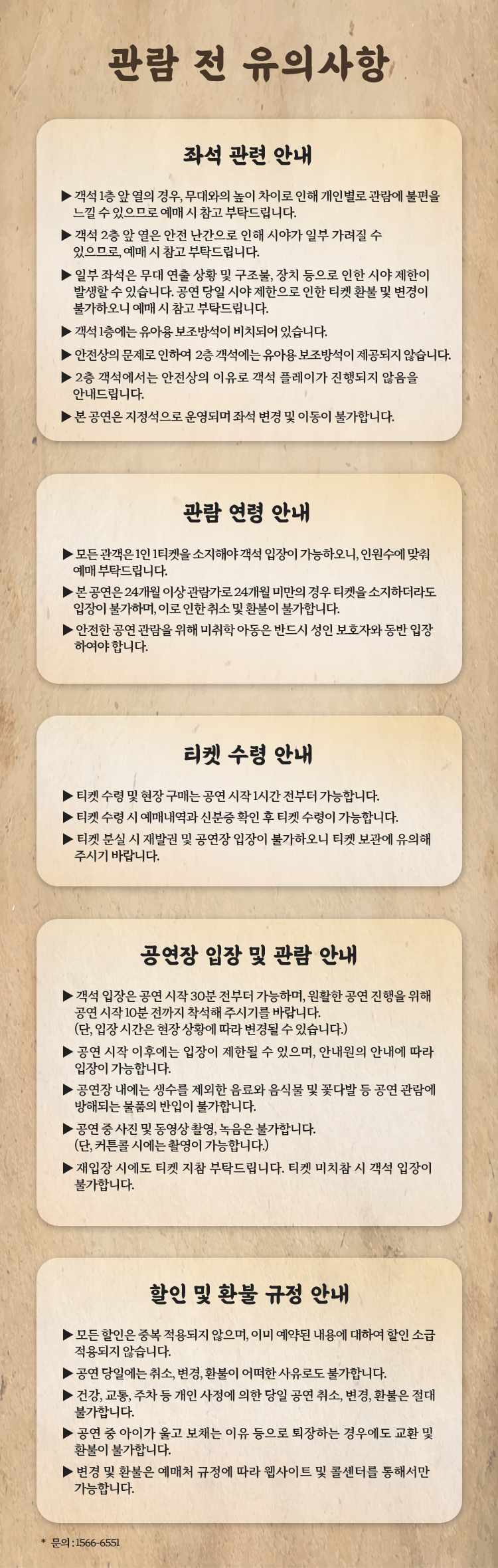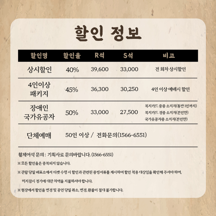 - 관람일 2일전 ~ 취소기한까지: 티켓금액의 30%