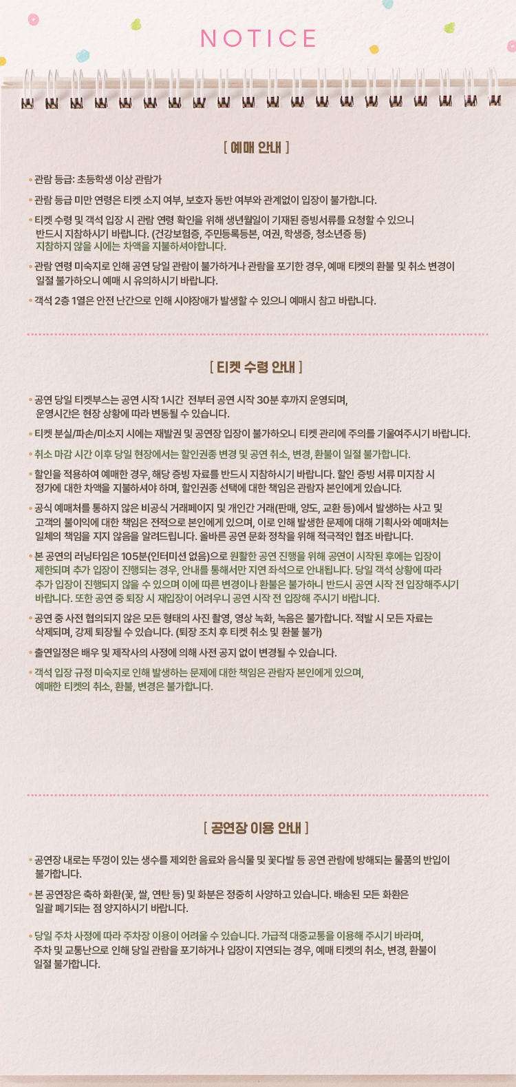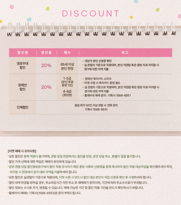- 관람일 2일전 ~ 취소기한까지: 티켓금액의 30%