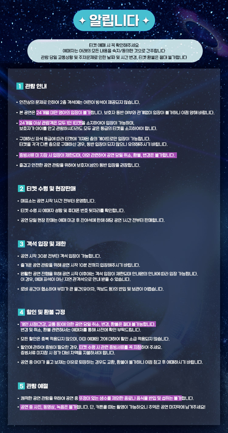 예매가능시간: 전회차 공연관람 전 오전 9시까지