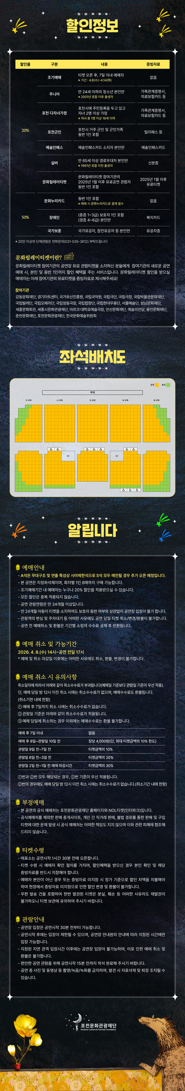 - 관람일 2일전 ~ 취소기한까지: 티켓금액의 30%