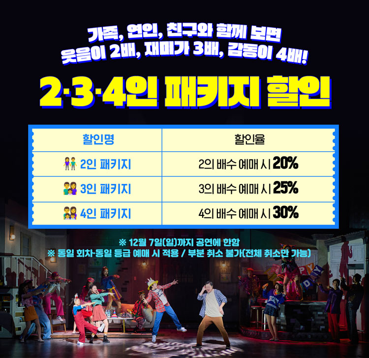 - 관람 연령 미숙지로 인해 공연 당일 관람이 불가하거나 관람을 포기한 경우 예매 취소, 환불, 변경이 일체 불가하니 예매 시 각별히 유의하시기 바랍니다.