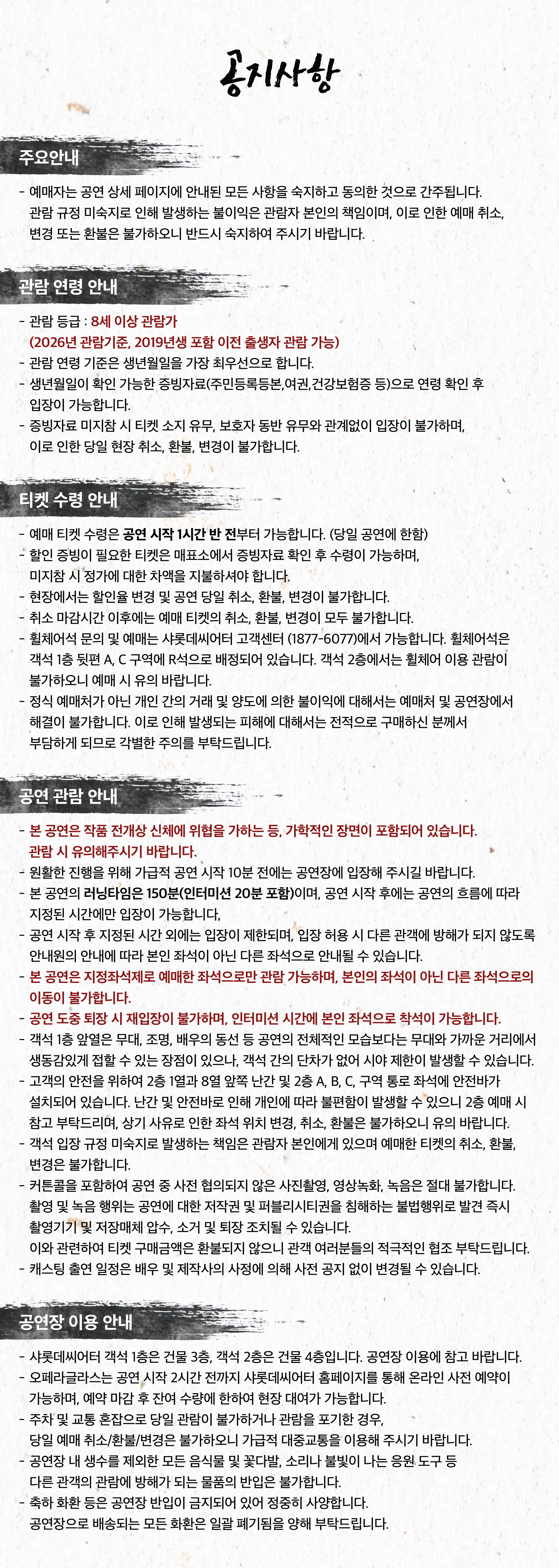 - 150분 (인터미션 20분 포함)