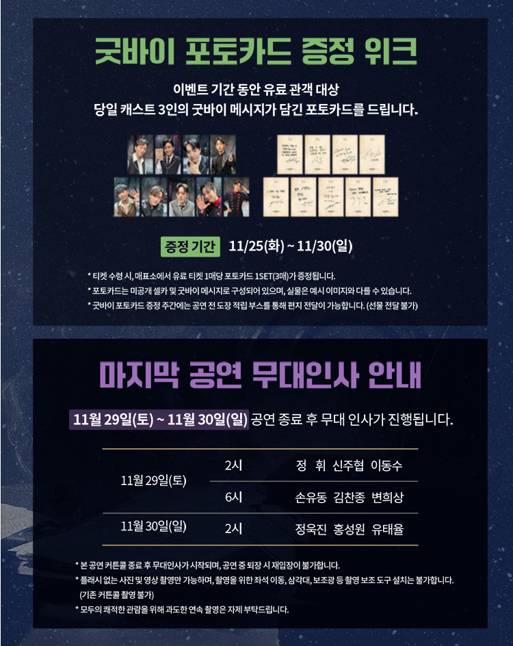화, 수, 목, 금 8시 / 토, 일 2시, 6시 (월 공연없음, 일자별 상이)