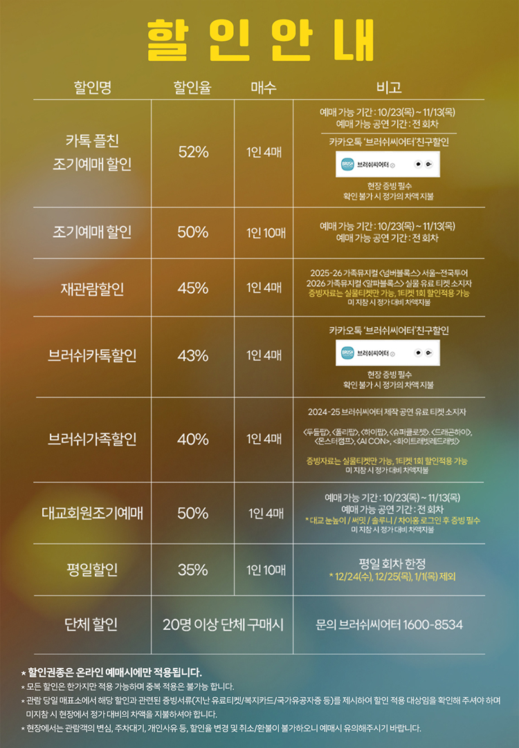 - 특정 기간, 특정 공연일에만 판매하는 가격이 있으니 예매 전 [가격 전체 보기]를 눌러 확인해 주세요.