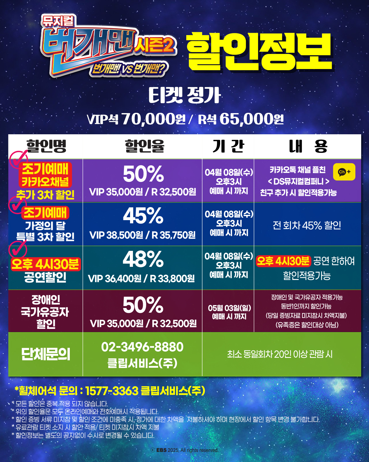 - 특정 기간, 특정 공연일에만 판매하는 가격이 있으니 예매 전 [가격 전체 보기]를 눌러 확인해 주세요.