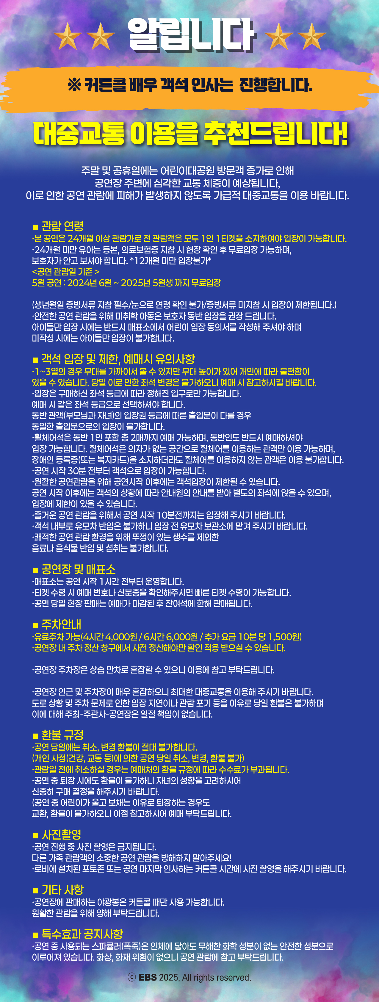 - 예매 후 7일 이내 취소시 티켓 금액 전액이 환불됩니다.(예매 수수료 제외)