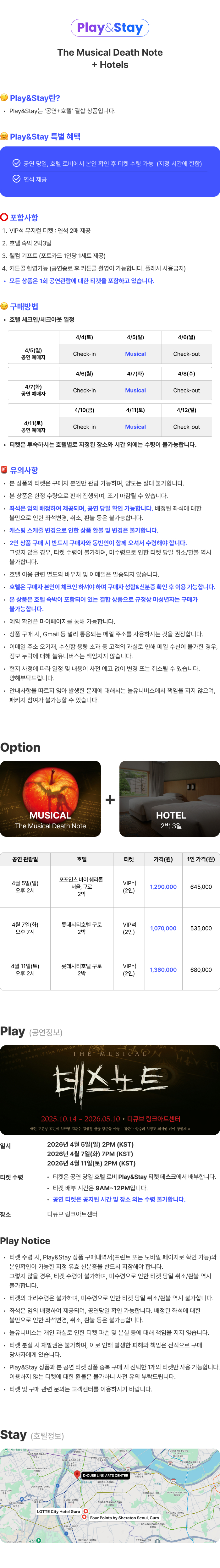 [Play&Stay]뮤지컬 데스노트+ Hotel