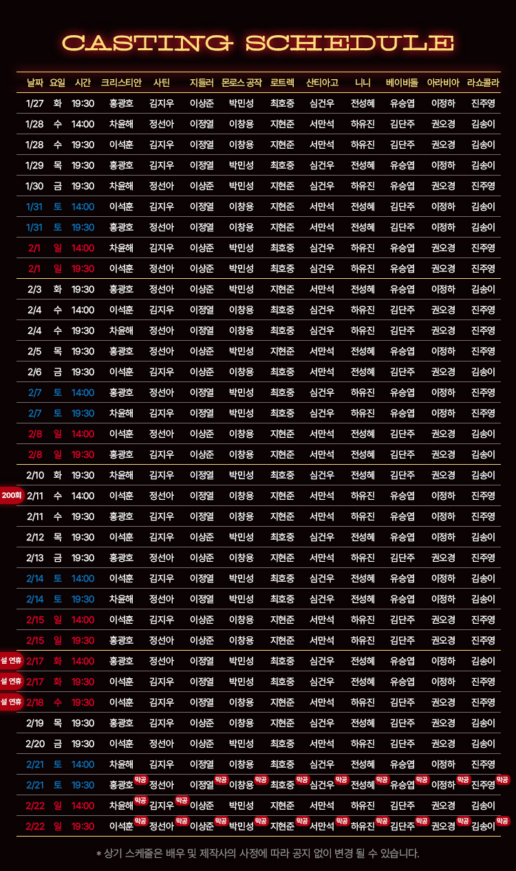 ※ 1/28(수), 2/4(수), 2/11(수), 2/17(화) 오후 2시, 오후 7시 30분 │ 2회 공연