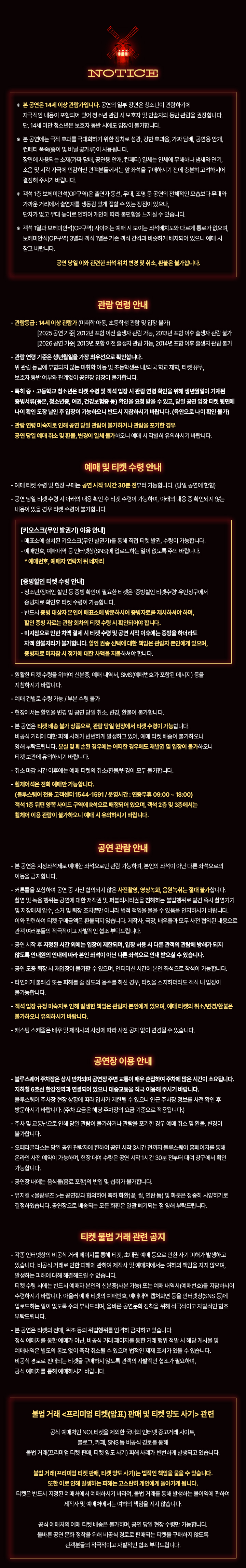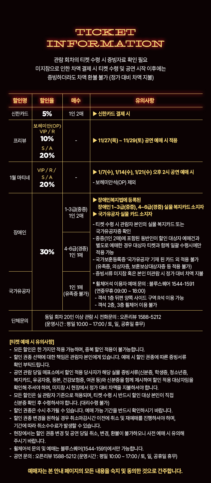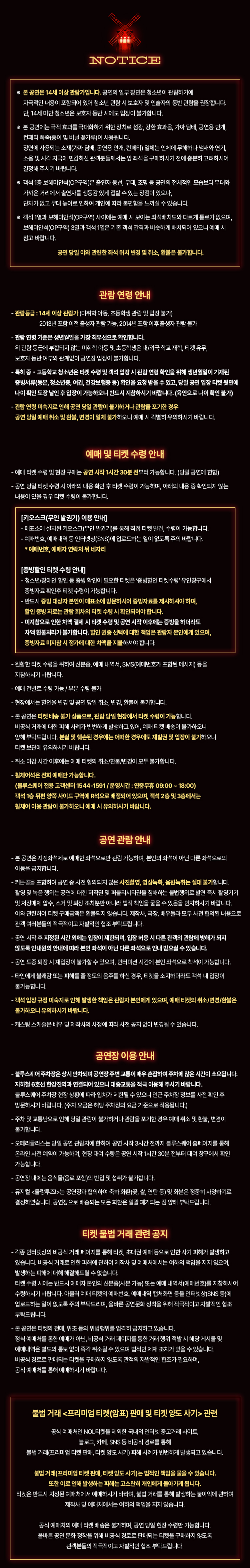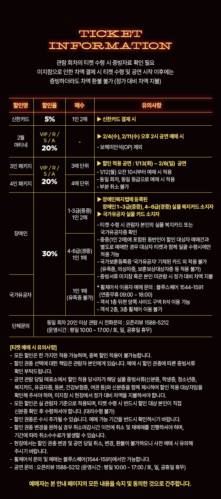 - 관람일 2일전 ~ 취소기한까지: 티켓금액의 30%