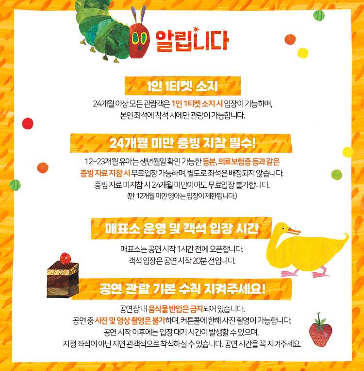 수,금 15시 / 주말 및 공휴일 16시 30분 / 월 공연 없음