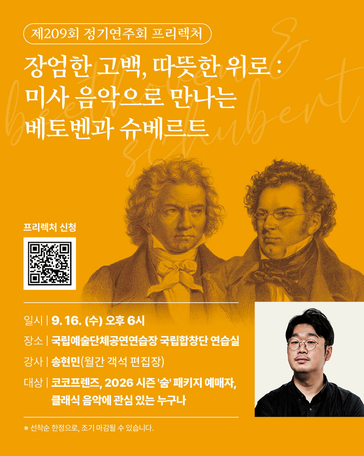 - 국립합창단 유료회원 〈코코프렌즈 골드〉 40% (1인 10매 / R, S석에 한함 / 티켓 수령 시 국립합창단 예매 안내 문자 확인)