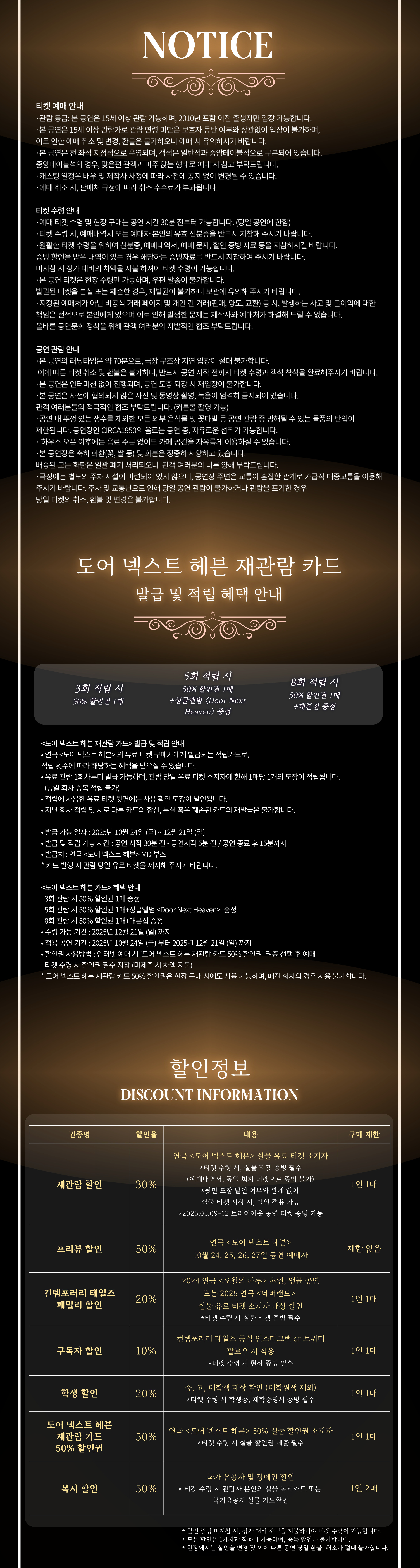 - 관람일 2일전 ~ 취소기한까지: 티켓금액의 30%