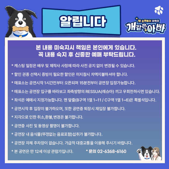- 예매 후 7일 이내 취소시 티켓 금액 전액이 환불됩니다.(예매 수수료 제외)