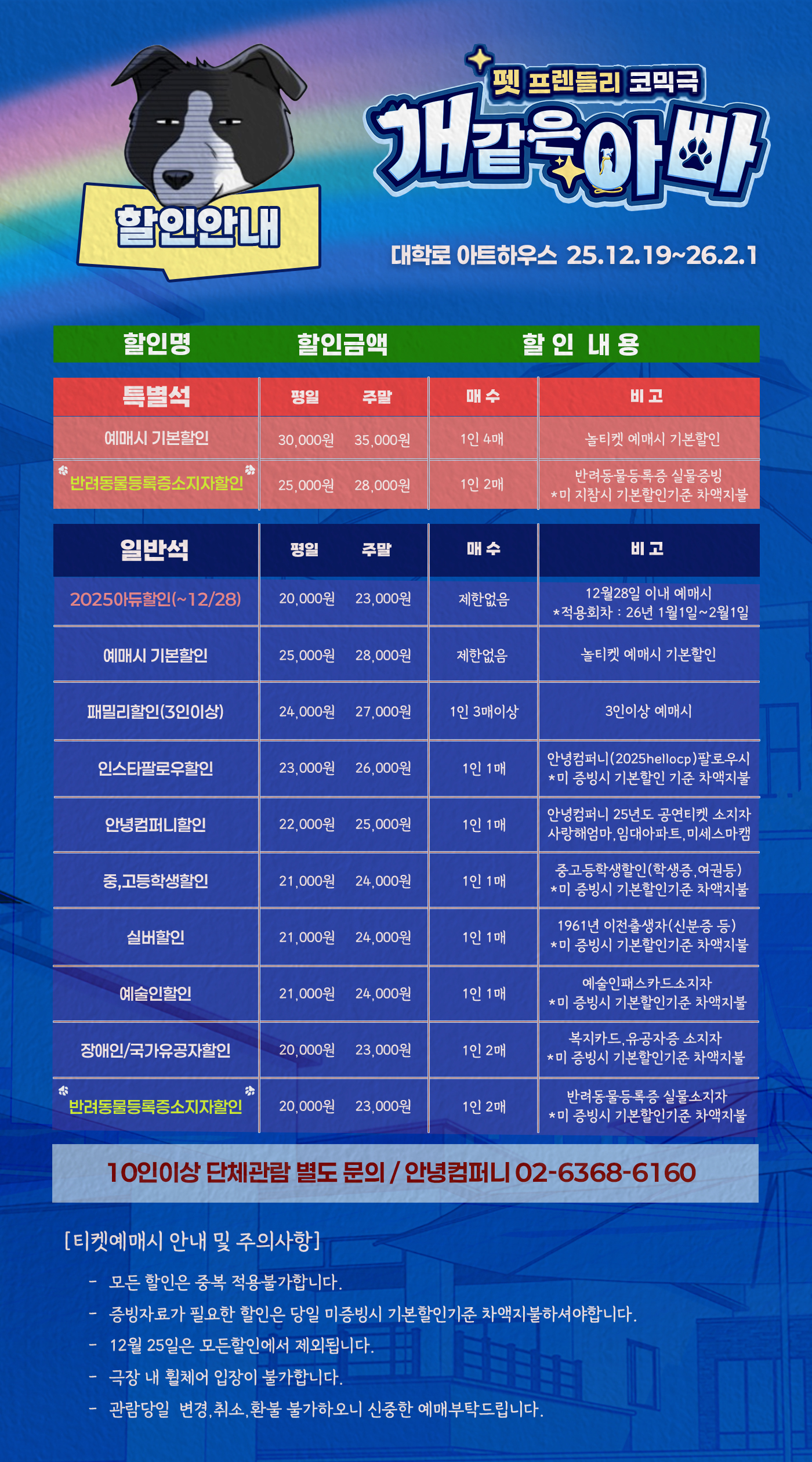 - 관람일 2일전 ~ 취소기한까지: 티켓금액의 30%
