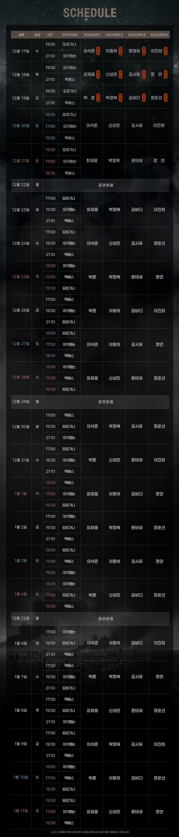* 단 12/17~12/19 공연은 19시 30분, 21시 10분 공연만 진행