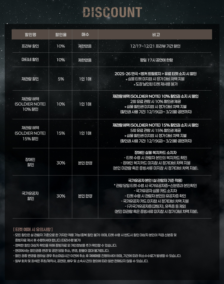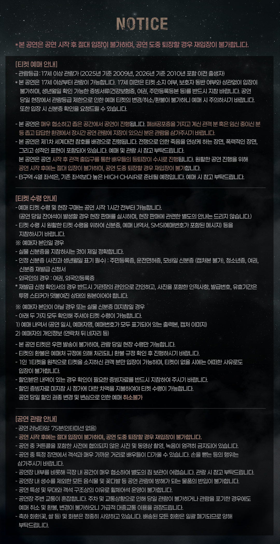 - 특정 기간, 특정 공연일에만 판매하는 가격이 있으니 예매 전 [가격 전체 보기]를 눌러 확인해 주세요.