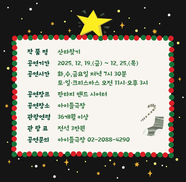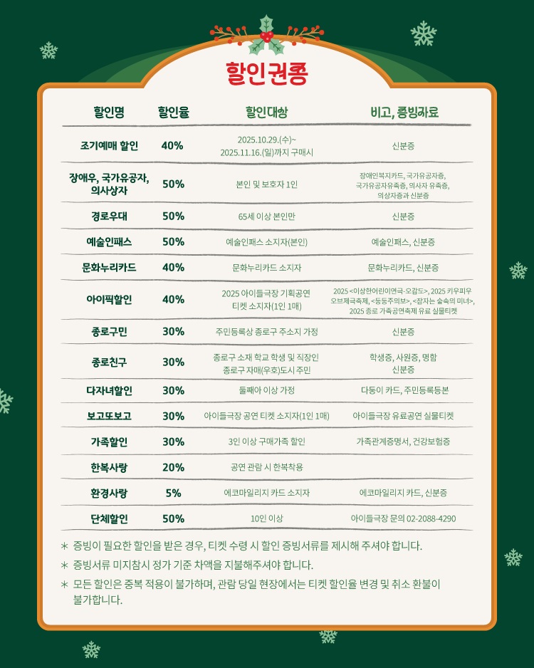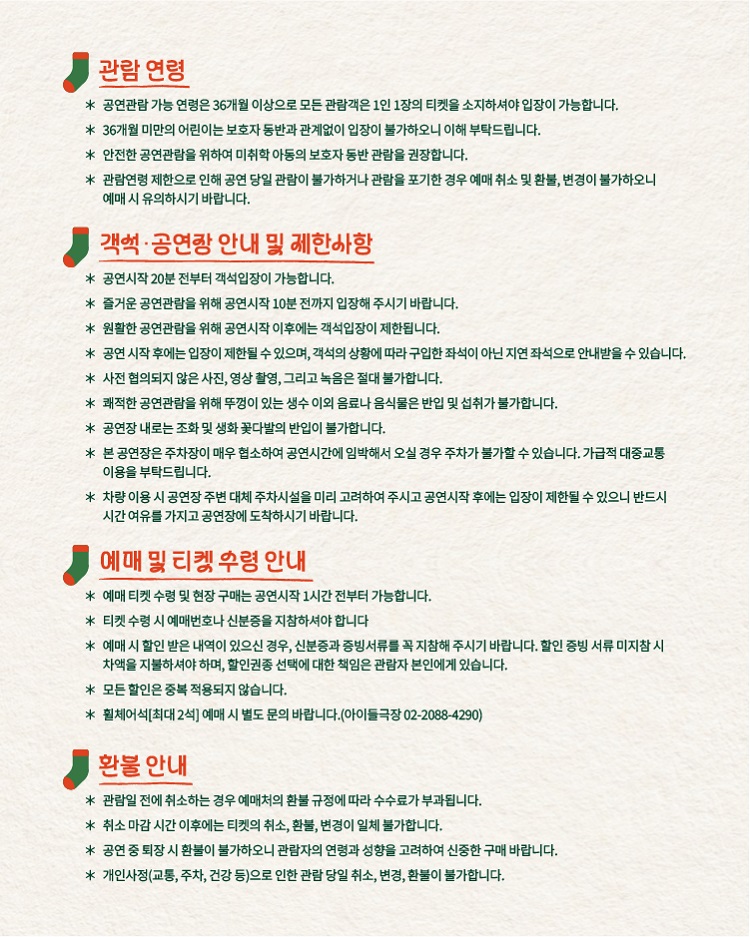 화,수,금 19:30 / 토,일,크리스마스 11:00, 15:00