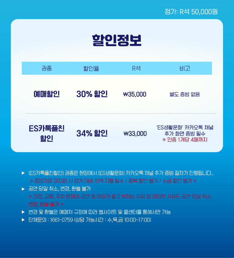 - 예매 후 7일 이내 취소시 티켓 금액 전액이 환불됩니다.(예매 수수료 제외)