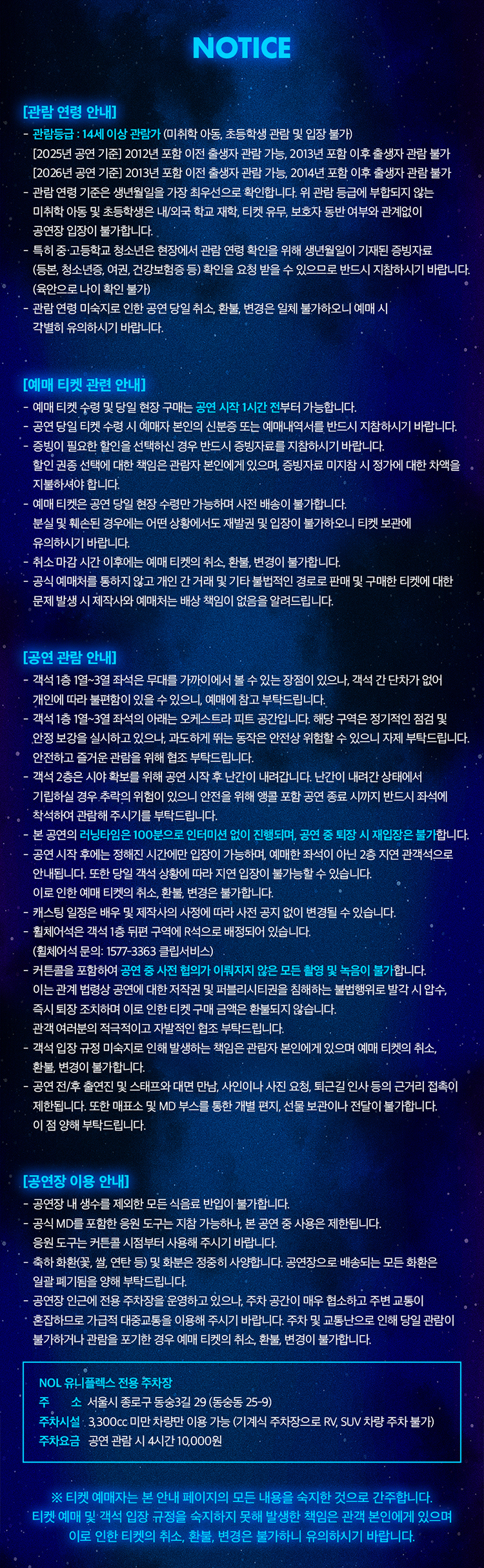 *2/28(토) 오후 6시 (1회 공연), 3/2(월) 공연 없음