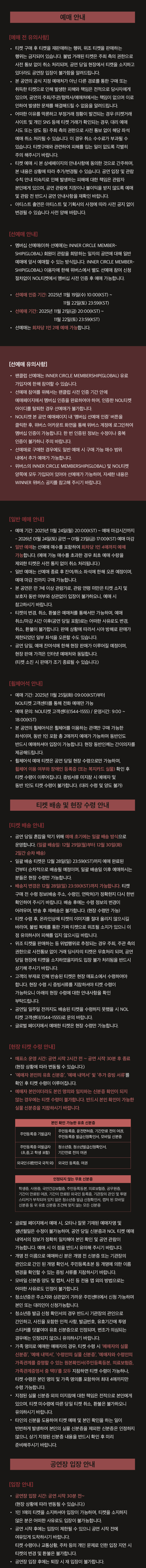 - 관람일 2일전 ~ 취소기한까지: 티켓금액의 30%