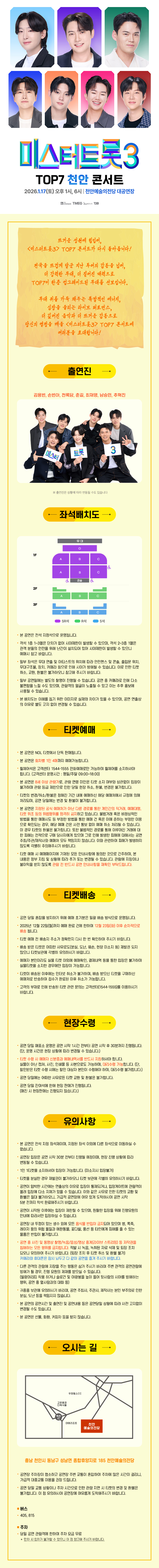 - 예매 후 7일 이내 취소시 티켓 금액 전액이 환불됩니다.(예매 수수료 제외)