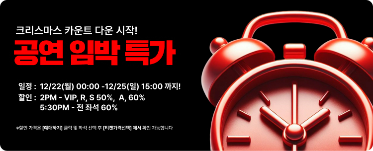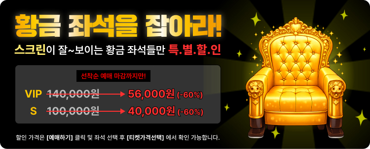 - 관람일 2일전 ~ 취소기한까지: 티켓금액의 30%
