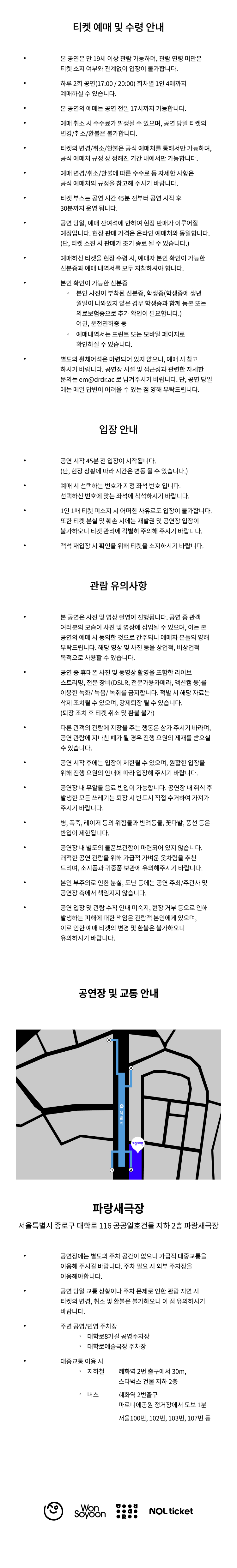 - 관람일 2일전 ~ 취소기한까지: 티켓금액의 30%