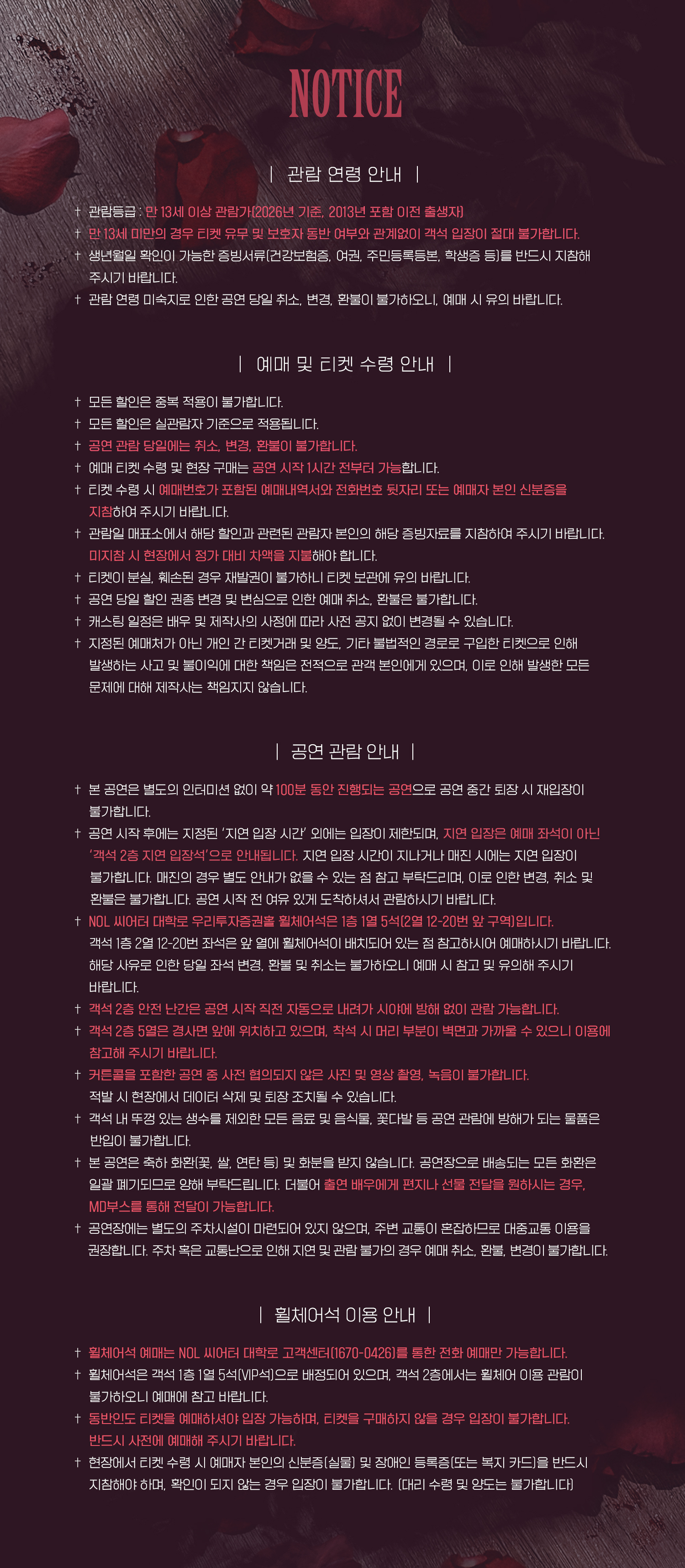 - 특정 기간, 특정 공연일에만 판매하는 가격이 있으니 예매 전 [가격 전체 보기]를 눌러 확인해 주세요.