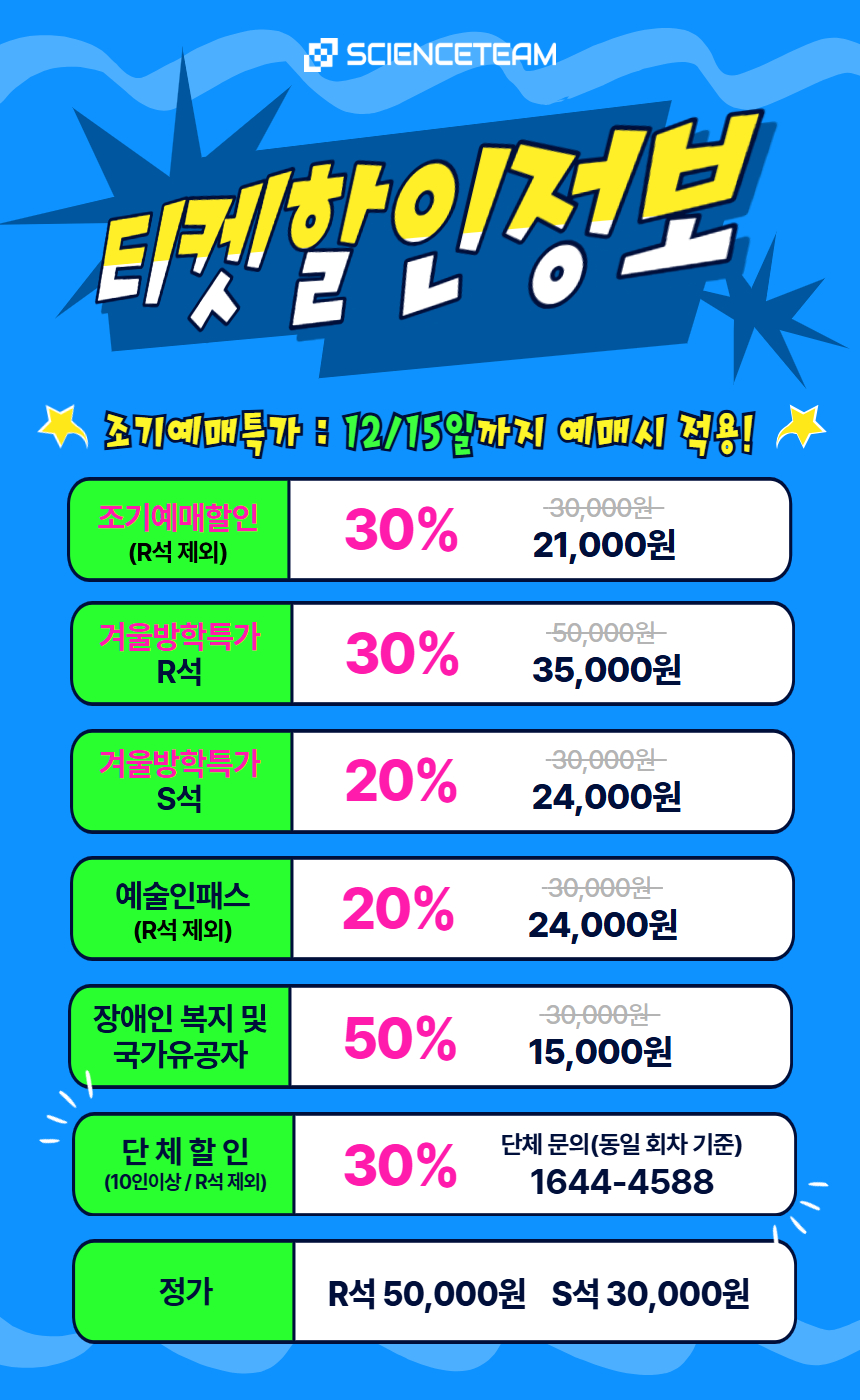 - 관람일 2일전 ~ 취소기한까지: 티켓금액의 30%