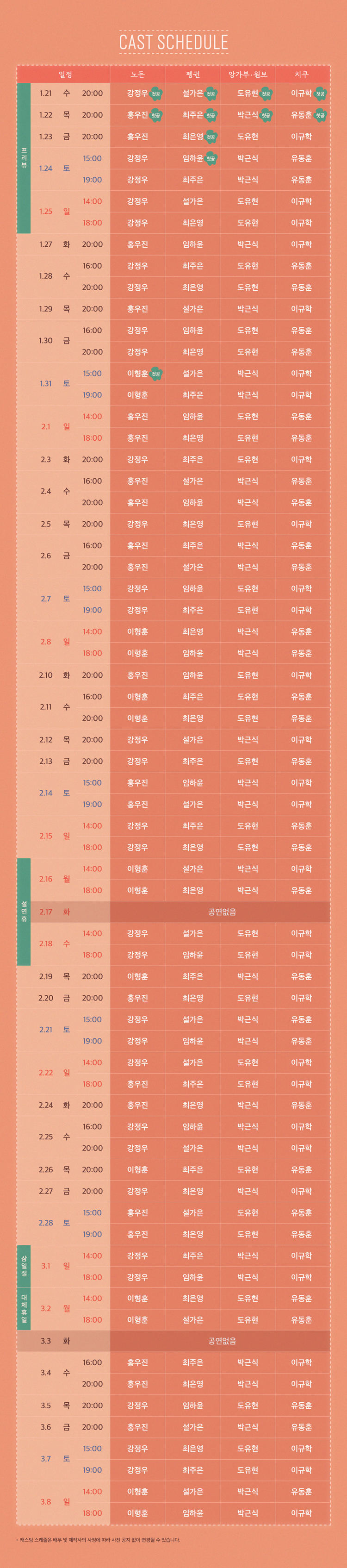 * 1/21(수) 16:00 | 2/17(화) 14:00, 18:00 공연 없음