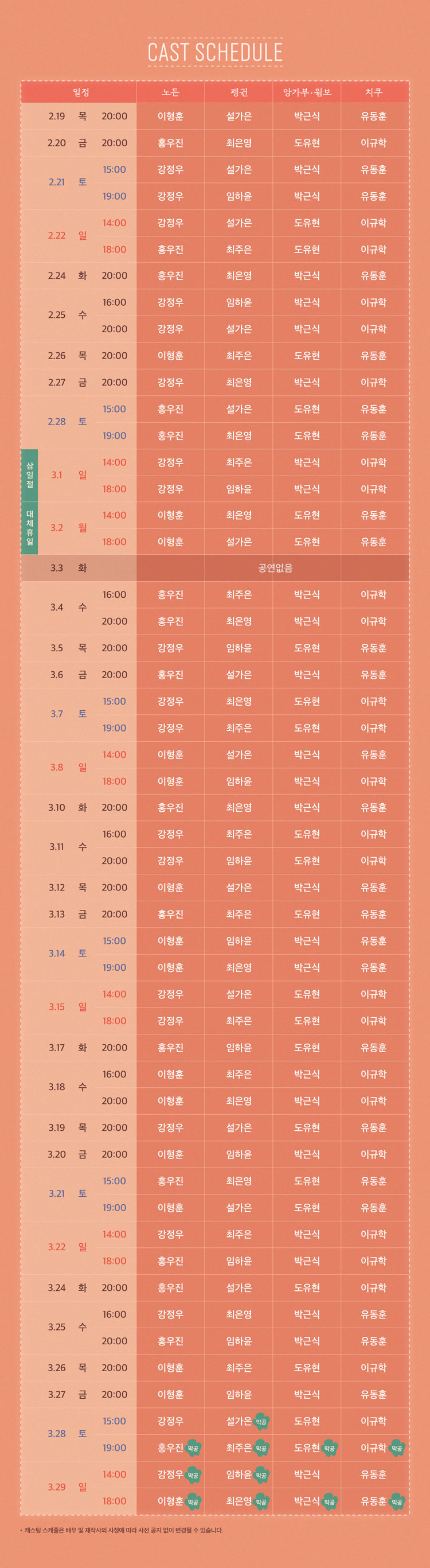 * 3/2(월) 14:00, 18:00 공연 있음