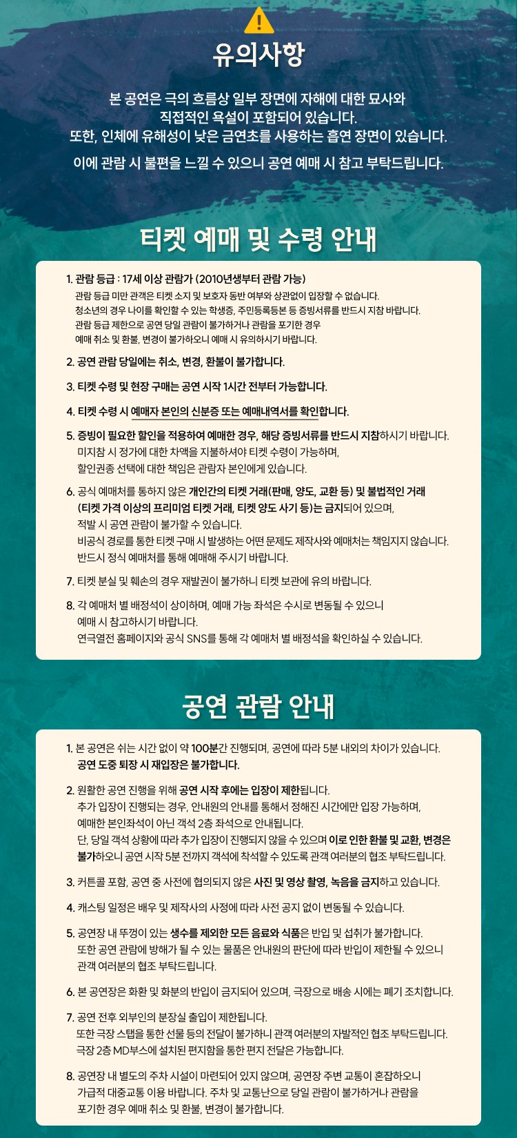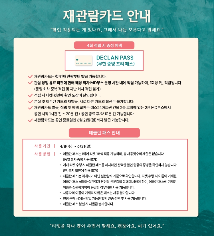 - 관람일 2일전 ~ 취소기한까지: 티켓금액의 30%