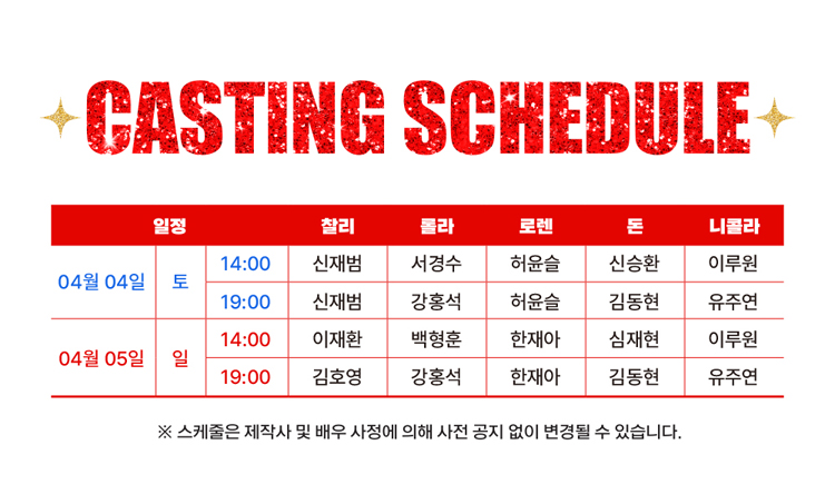 2026년 4월 4일(토) 14시, 19시