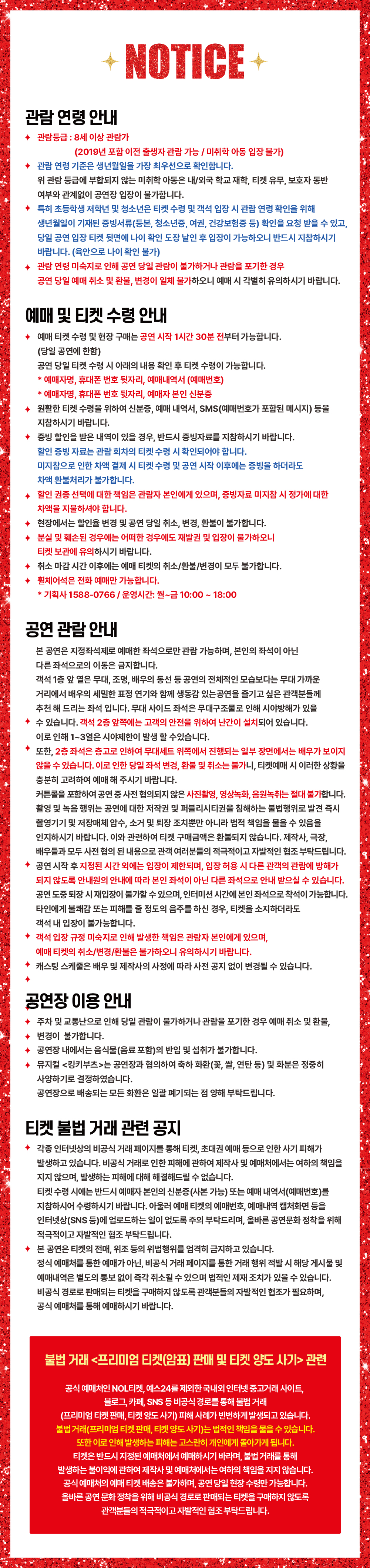 - 관람일 2일전 ~ 취소기한까지: 티켓금액의 30%