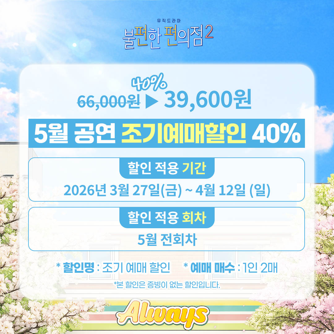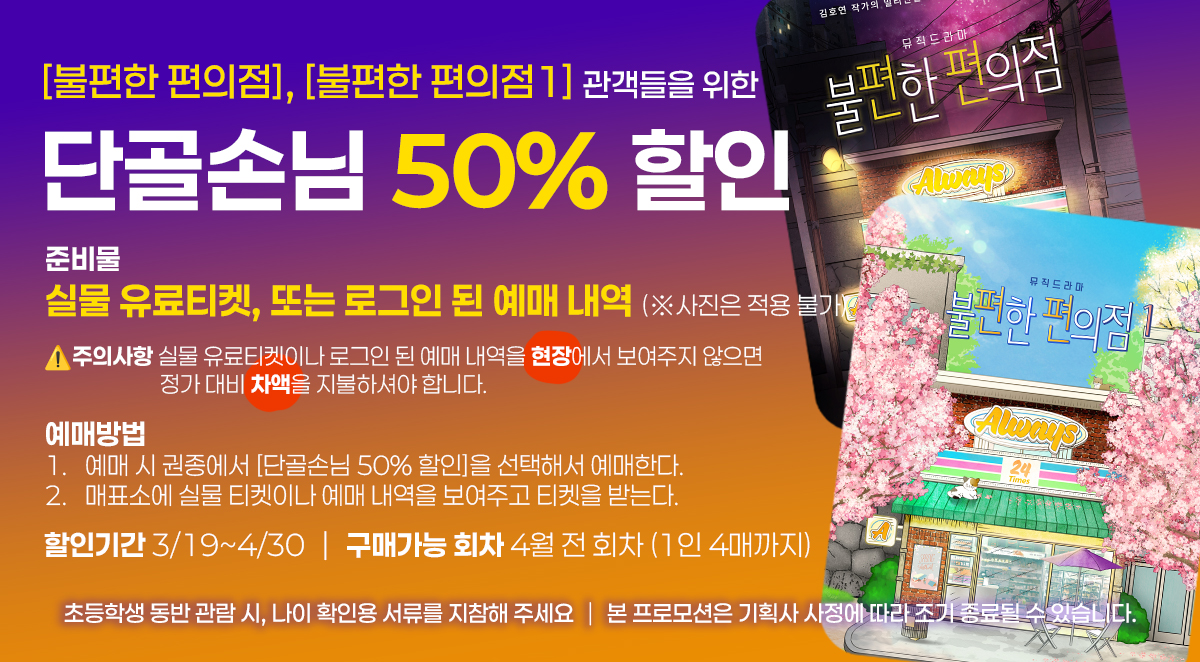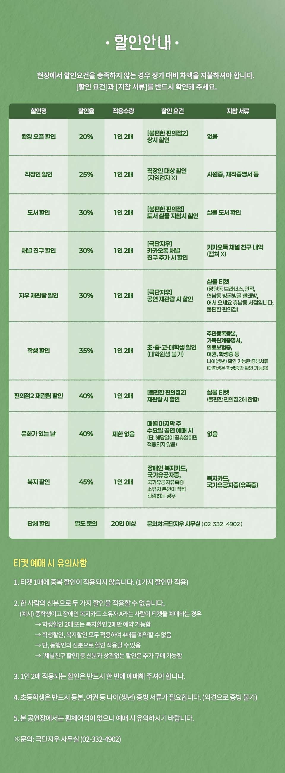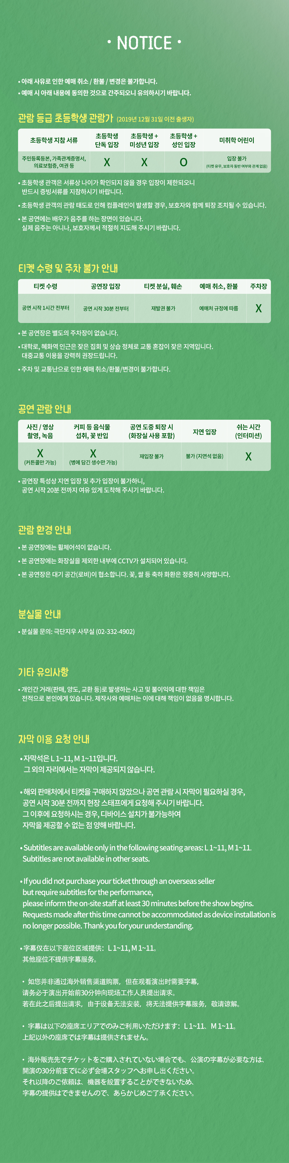 - 특정 기간, 특정 공연일에만 판매하는 가격이 있으니 예매 전 [가격 전체 보기]를 눌러 확인해 주세요.