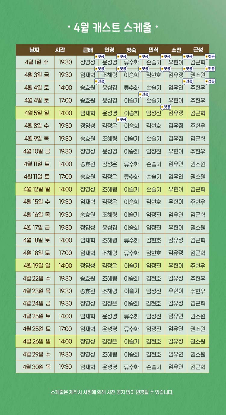 수-금 19:30 │ 토 14:00, 17:00 │ 일 14:00