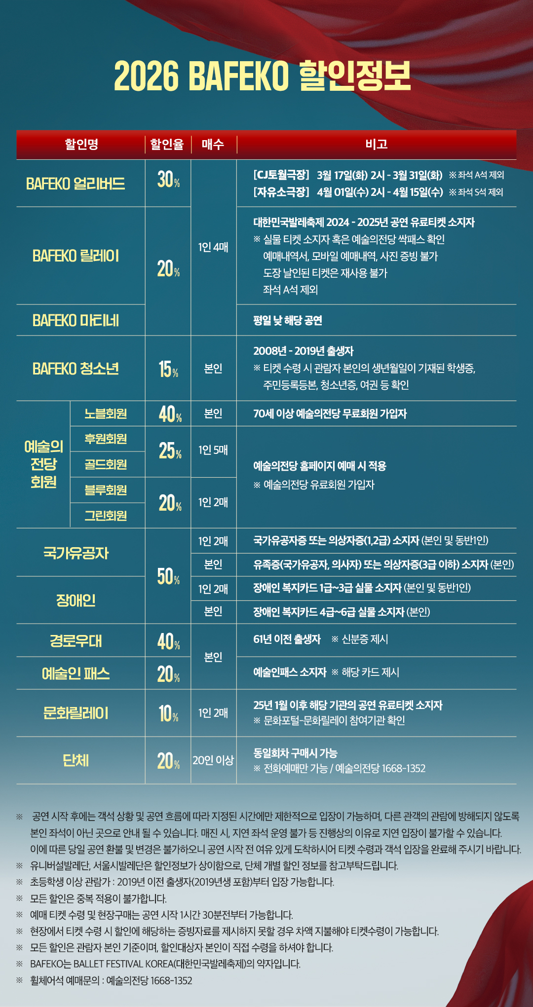 - 관람일 2일전 ~ 취소기한까지: 티켓금액의 30%