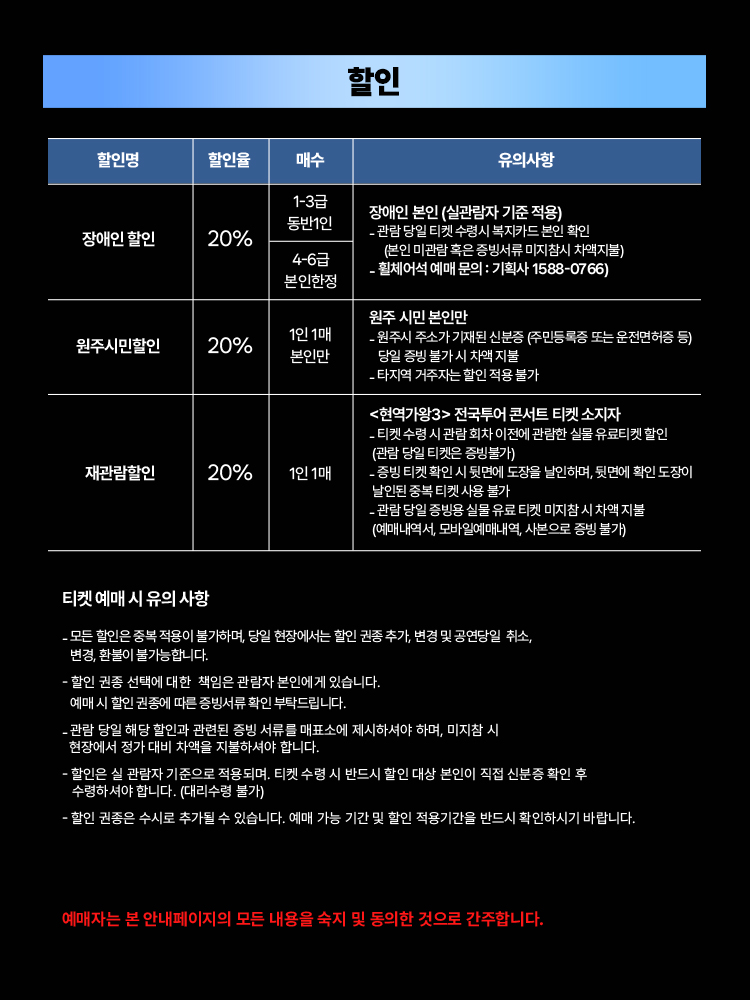 - 예매 후 7일 이내 취소시 티켓 금액 전액이 환불됩니다.(예매 수수료 제외)