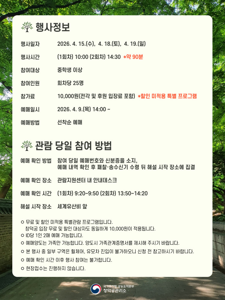· 행사일자: 2026. 4.15(수), 4.18(토), 4.19(일)