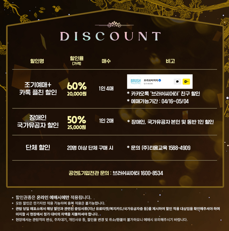 - 특정 기간, 특정 공연일에만 판매하는 가격이 있으니 예매 전 [가격 전체 보기]를 눌러 확인해 주세요.