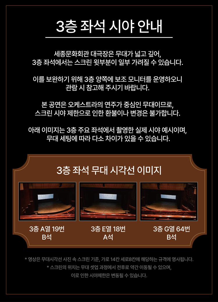 - 관람일 2일전 ~ 취소기한까지: 티켓금액의 30%