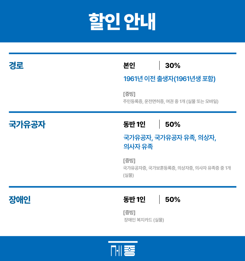 - 예매 후 7일 이내 취소시 티켓 금액 전액이 환불됩니다.(예매 수수료 제외)